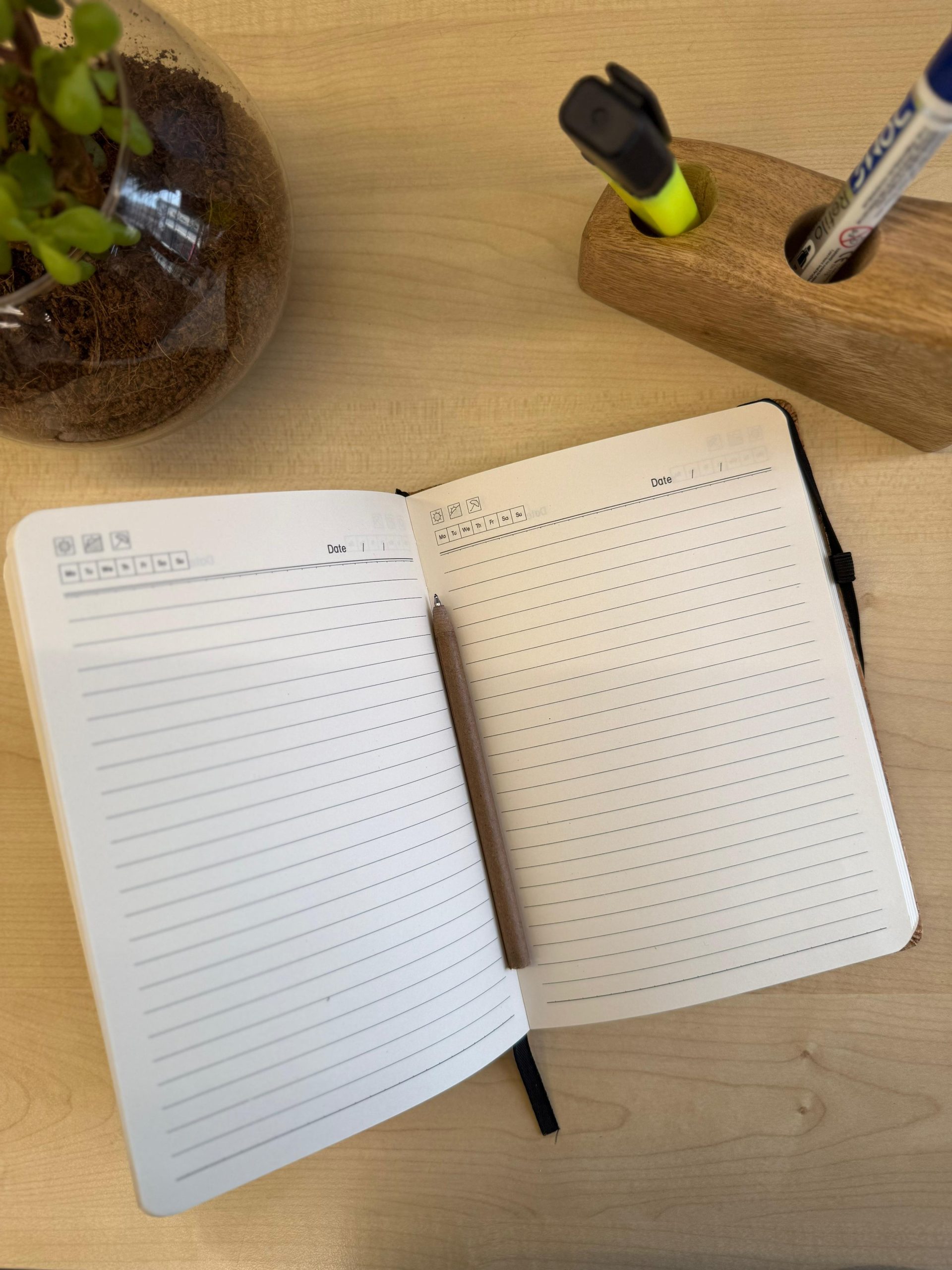 - Built-in Pen Holder: A sleek pen holder attached to the diary for easy access on the go.